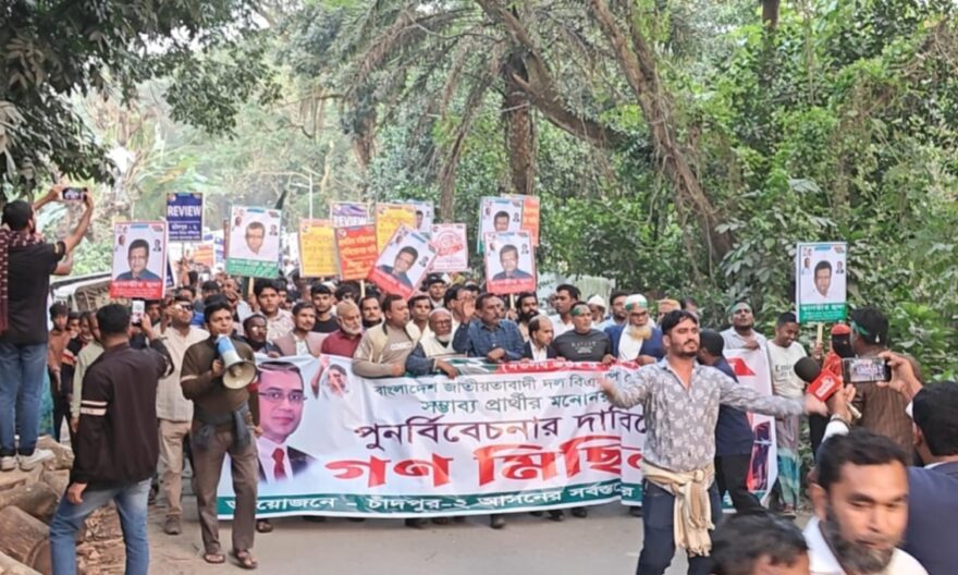 চাঁদপুর-২ (মতলব উত্তর ও দক্ষিণ) নির্বাচনী এলাকায় বিএনপির ঘোষিত সম্ভাব্য প্রার্থীর মনোনয়ন পুনর্বিবেচনার দাবিতে গণমিছিল ও বিক্ষোভ সমাবেশ অনুষ্ঠিত হয়েছে। জেলা বিএনপির যুগ্ম সাধারণ সম্পাদক তানভীর হুদার অনুসারীও তৃণমূল বিএনপি উদ্যোগে রবিবার (২৩ নভেম্বর) বিকেলে এ কর্মসূচি পালিত হয়।