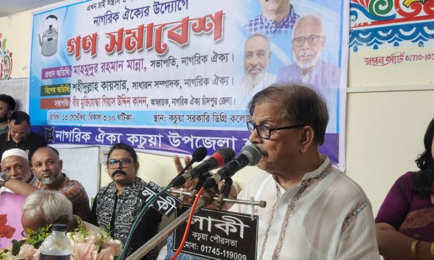 শনিবার (১৩ সেপ্টেম্বর) বিকেলে চাঁদপুরের কচুয়া উপজেলা শাখা নাগরিক ঐক্যের আয়োজনে কচুয়া সরকারি কলেজ মিলনায়তনে সমাবেশে তিনি এসব কথা বলেন।