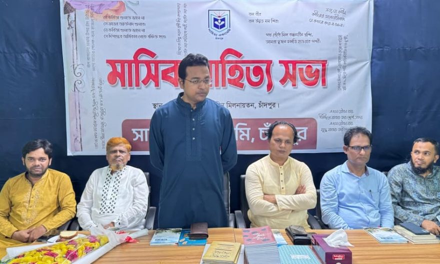 জাতীয় কবি কাজী নজরুল ইসলামকে নিয়ে আলোচনা করেন চাঁদপুর সাহিত্য পরিষদের সভাপতি ম. নূরে আলম পাটওয়ারী ও নজরুল গবেষণা পরিষদের সভাপতি মো. মোশাররফ হোসেন ও সাধারণ সম্পাদক আবদুল গণি।
