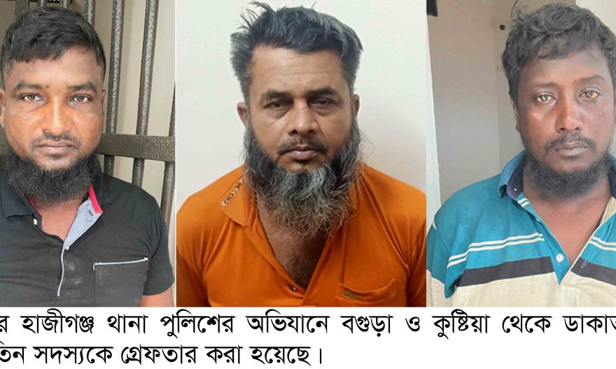 চাঁদপুরের হাজীগঞ্জে ডাকাতির মামলায় দুইটি ট্রাক, তালা কাটার সরঞ্জাম’সহ (বড় কাটার) ডাকাত দলের সক্রিয় ৩ সদস্যকে গ্রেফতার করা হয়েছে। বুধবার (৩০ জুলাই) দুপুরে ডাকাত সাবু, জামাল খান ও কালুকে আদালতে সোপর্দ করে পুলিশ।