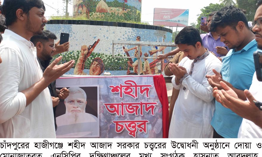 এ বিষয়ে দলটির যুগ্ম মুখ্য সমন্বয়ক ও চাঁদপুর জেলা কমিটির প্রধান সমন্বয়কারী মো. মাহাবুব আলম বলেন, জুলাই গণ-অভ্যুত্থানের বর্ষপূর্তি ও দেশ গড়তে জেলায় জেলায় এনসিপির পদযাত্রা কর্মসূচি অংশ হিসেবে আজ চাঁদপুরে এ পদযাত্রা ও শহীদ পরিবারের সাথে সৌজন্য সাক্ষাৎ অনুষ্ঠিত হয়েছে। এসময় কুমিল্লা যাওয়ার পথে হাজীগঞ্জে শহীদ আজাদ চত্ত্বরের উদ্বোধন করেন নেতৃবৃন্দ।
