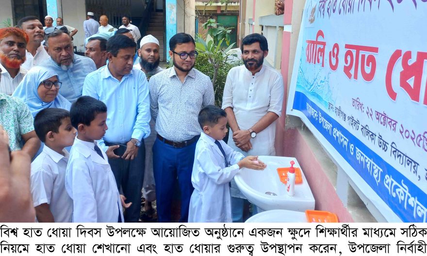 ‘হাত ধোয়ার নায়ক হোন’ এই প্রতিপাদ্যে হাজীগঞ্জে উপজেলা প্রশাসন ও জনস্বাস্থ্য প্রকৌশল অধিদপ্তরের আয়োজনে বিশ্ব হাত ধোয়া দিবস উদ্যাপিত হয়েছে। দিবসটি উপলক্ষ্যে মঙ্গলবার (২২ অক্টোবর) দুপুরে হাজীগঞ্জ পাইলট বালিকা উচ্চ বিদ্যালয় ও হাজীগঞ্জ বালিকা সরকারি প্রাথমিক বিদ্যালয়ের শিক্ষার্থীদের সঠিক নিয়মে হাত ধোয়া শেখানো এবং হাত ধোয়ার গুরুত্ব আলোচনা করা হয়।