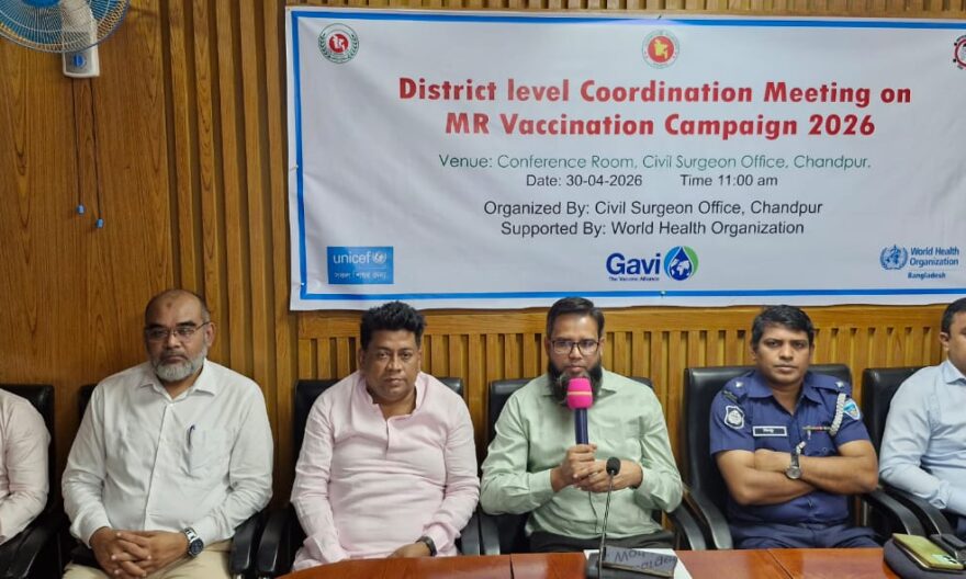 চাঁদপুরে হাম–রুবেলা (এমআর) টিকা ক্যাম্পেইন সফলভাবে বাস্তবায়নের লক্ষ্যে জেলা পর্যায়ের সমন্বয় সভা অনুষ্ঠিত হয়েছে। বৃহস্পতিবার (৩০ এপ্রিল) সকাল ১১টায় চাঁদপুর সিভিল সার্জন অফিসের আয়োজনে সিভিল সার্জন কার্যালয়ের সম্মেলন কক্ষে এ সভা অনুষ্ঠিত হয়।