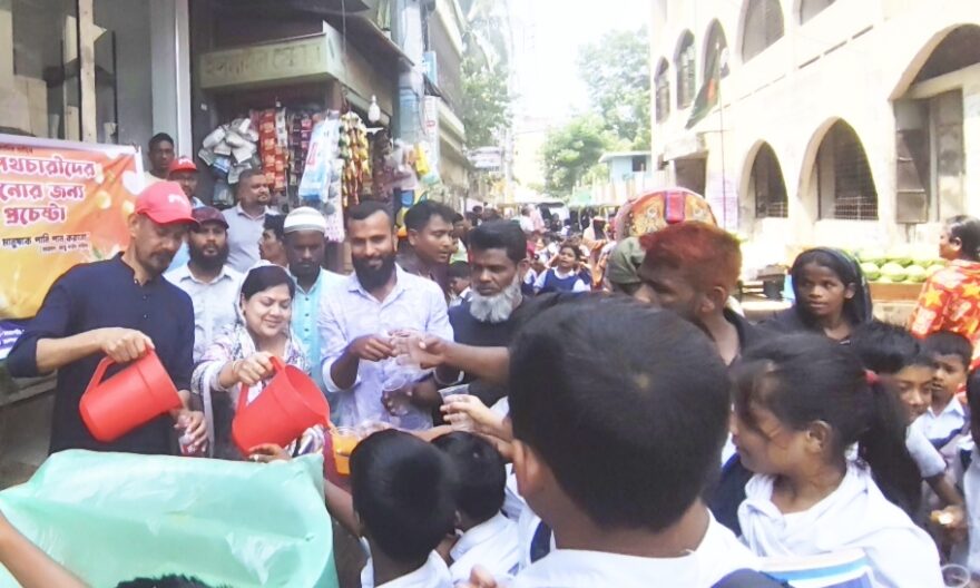 এসময় শিশু, শিক্ষার্থী, বয়োবৃদ্ধ, রিকশাচালক ও সিএনজি চালিত অটোরিকশার চালকসহ নানা শ্রেণি-পেশার মানুষের হাতে তুলে দেওয়া হয় শীতল পানীয়। কাউন্সিলর পদপ্রার্থী মো. শাহানুর বেপারী শানু ও তার স্ত্রী সেলিনা আক্তার নিজ হাতে স্কুলের কোমলমতী শিশুদের শরবত পরিবেশন করে।