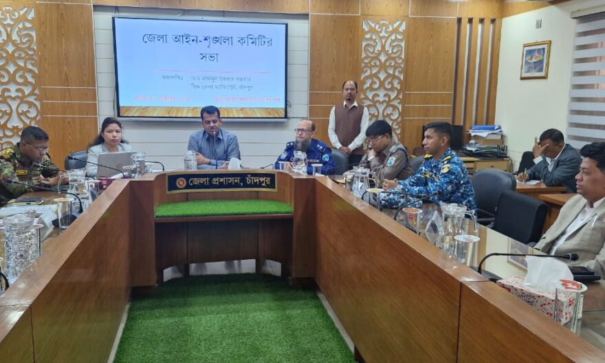 চাঁদপুর জেলা আইনশৃঙ্খলা কমিটির সভা অনুষ্ঠিত হয়েছে শনিবার (৮ ফেব্রুয়ারি) সকাল ১০টায় চাঁদপুর জেলা প্রশাসক কার্যালয় সম্মেলন কক্ষে। সভায় সভাপতিত্ব করেন জেলা প্রশাসক ও বিজ্ঞ জেলা ম্যাজিস্ট্রেট মোঃ নাজমুল ইসলাম সরকার।