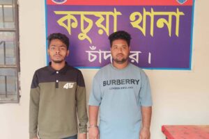 নিজস্ব প্রতিনিধি ॥ চাঁদপুরের কচুয়ায় মহাসড়কে রিবহন থেকে চাঁদা আদায়ের সময় দুই যুবককে গ্রেফতার করেছে কচুয়া থানা পুলিশ। রবিবার (৮ মার্চ ) দুপুরে পুলিশ তাদেরকে আদালতে করা হলে আদালত জেলহাজতে প্রেরণ... Read more »