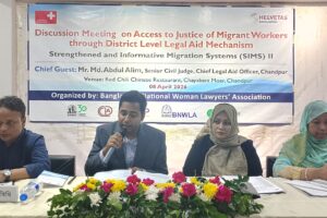 স্টাফ রিপোটার : বাংলাদেশ জাতীয় মহিলা আইনজীবী সমিতির উদ্যোগে “জেলা পর্যায়ে আইনি সহায়তার মাধ্যমে অভিবাসী কর্মীদের ন্যায়বিচার প্রাপ্তি” শীর্ষক আলোচনা সভা অনুষ্ঠিত হয়েছে। বুধবার (৮ মার্চ ) বিকেলে চাঁদপুরস্থ হোটেল... Read more »